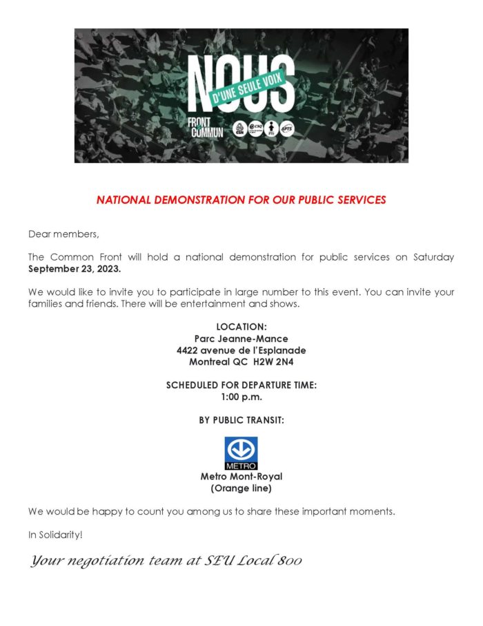 NATIONAL DEMONSTRATION FOR OUR PUBLIC SERVICES