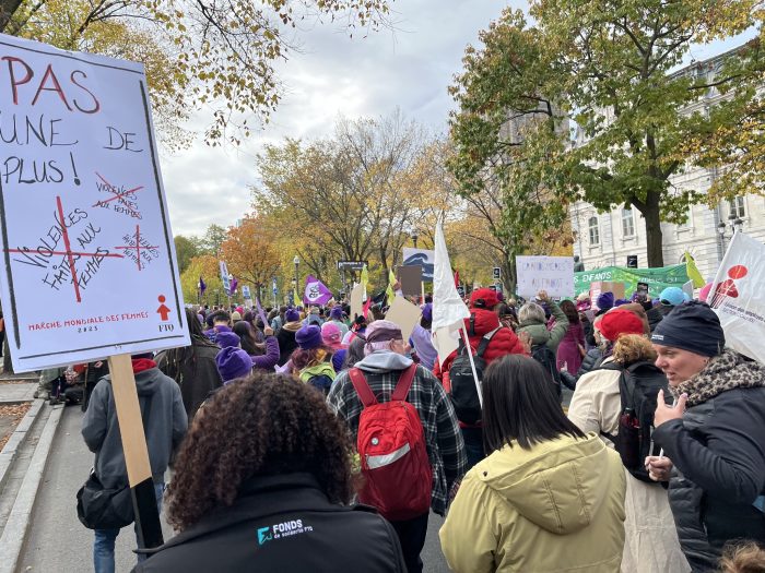 La Coordination du Québec de la Marche mondiale des femmes (CQMMF) avait préparé une journée à la fois festive et combative : rassemblement à la Place de l’Assemblée nationale, activités participatives, prises de parole inspirantes et marche collective à travers les rues de la capitale.