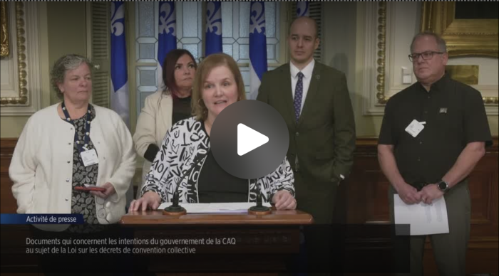 Un document qui confirme ce que nous redoutions : le ministre Jean Boulet prépare bel et bien une proposition visant à abroger la Loi sur les décrets de convention collective, malgré ses déclarations rassurantes de la semaine dernière.